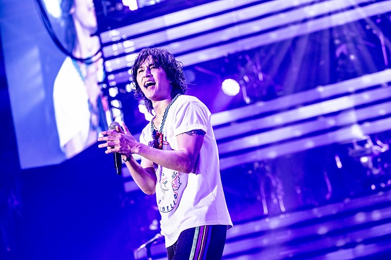 最初のMCでは、「皆さん今日は悔いのないように、遠慮せずに、体を揺らしまくって思いっきり楽しんでいってください!」と稲葉。そして、サラスにバトンを渡すとクランチの効いたソロを奏で、「OVERDRIVE」へ突入した。ステージのボルテージはマックス状態で、稲葉もジャケットを脱ぎ捨て、サラスも泣きのギターソロを炸裂する。間奏では、オーディエンスの<Woo~>という声と手拍子に身を任せて、ラストコーラスへ。最後の最後に披露した稲葉の甲高いシャウトが、とてつもなく印象に残った。
