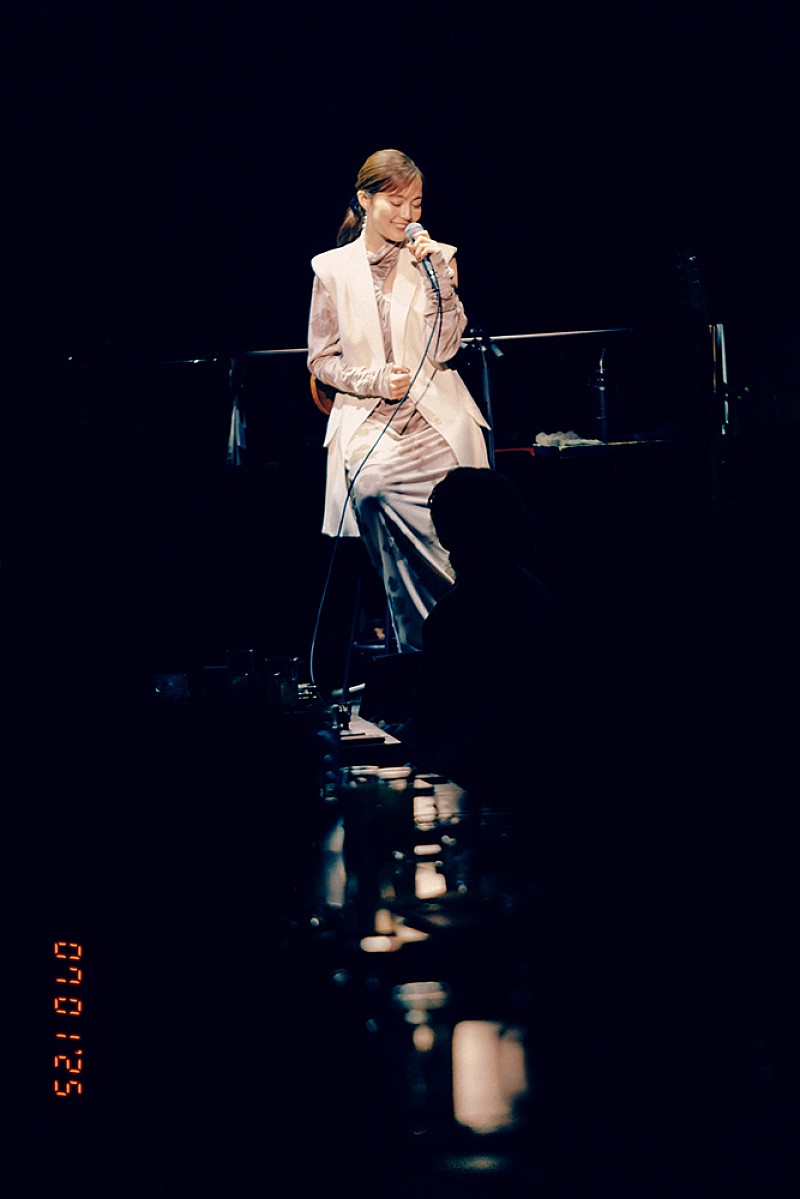 3曲歌い終えると、客席に向けて新年の挨拶をする生田。リラックスモードのトークで場を和ませながら、「このあとは冬にぴったりの曲をお届けしたいと思います」の言葉に続いて、昨年11月に配信された「モンブラン」でライブを再開。ウッドベースやアコースティックギター、鍵盤ハーモニカなど温かみのあるサウンドに、生田は繊細な歌声とピアノを重ねてドリーミーな空間を作り上げていく。続いては、過去にもカバーしたことのある桑田佳祐の名曲「白い恋人達」。マイクを片手にスツールに座った生田は、透明感の強いシルキーボイスでこの曲を彼女らしく染め上げる。さらにこの日は、椎名林檎がともさかりえに提供した「カプチーノ」という、もうひとつのカバー曲も用意。リズムに乗せてステージ上を動き回り、会場中のオーディエンスに目線を送る彼女は、曲のクライマックスでは美しいファルセットを会場中に響かせる。
