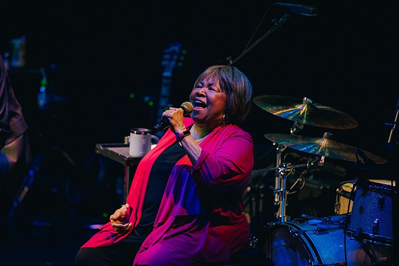 心地よいギターのカッティングが響き始めると、ピンク色のシャツに身を纏ったメイヴィスがステージに登場。大きな歓声で迎えられる中、彼女がメンバーとして在籍した、ステイプル・シンガーズの「City In the Sky」からスタートを切った。会場に響き始めるソウルフルな歌声。御年85歳とは考えられないほどの圧倒的なボーカルを目の当たりにし、観客のテンションが一気に上がっていく。続いて披露された「I’m Just Another Soldier」では、曲の終盤で「I’m a soldier!」という彼女の力強いシャウトが空間を突き抜けた。そして、カントリー調の軽快なナンバー「Hand Writing on the wall」、ブルージーな雰囲気の「Who Told You That」「Can You Get to That」が繰り出され、ステージはさらに盛り上がりを見せていく。