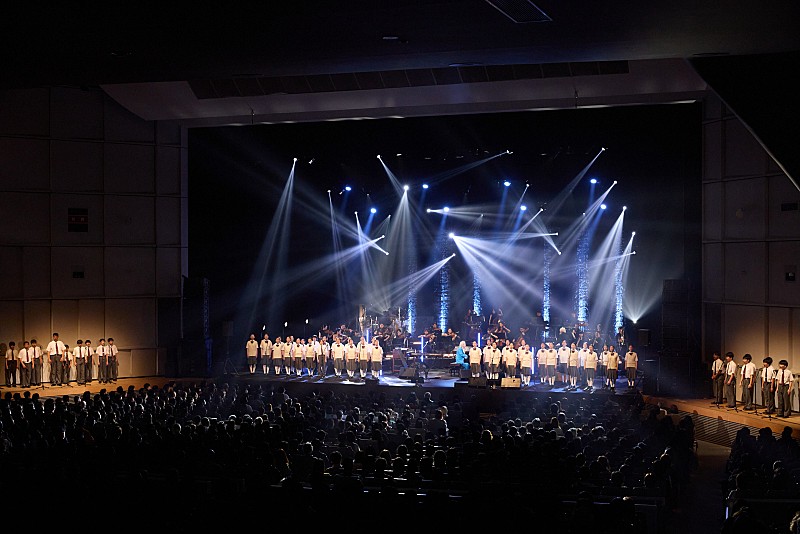 鳴りやまない手拍子に応え、小室が再びステージに登場すると「今日はリラックスできて本当に楽しかった」と笑顔で客席に語り掛ける。そして「漫画家の浦沢直樹さんが同じ中学の1学年下だった。『20世紀少年』の冒頭に中学校が出てくるけど、四中(府中第四中学校)に激似で驚いた。あとから後輩だと知って納得した」と、意外な後輩の存在を教えてくれた。小室の音楽家としての原点は同校の授業だったと話し、その同じ“DNA”を受け継ぐ後輩、同校合唱部について紹介。「今日は孫みたいな後輩と音楽で繋がれるなんて、こんな素晴らしいことはない」と、総勢57名の混声合唱団を呼び込む。
