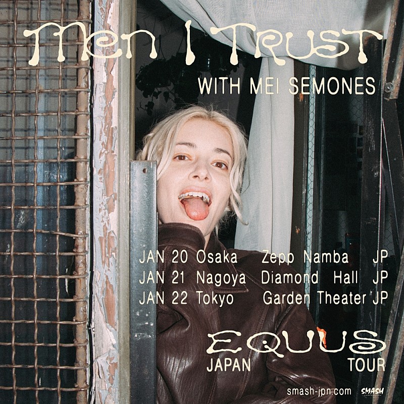 メン・アイ・トラストが、最新作『Equus Caballus』を携えた来日ツアーを2026年1月に開催する。【FUJI ROCK FESTIVAL】に出演予定の新鋭メイ・シモネスがサポートを務める。 公演は、1月20日に大阪・Zepp Namba…