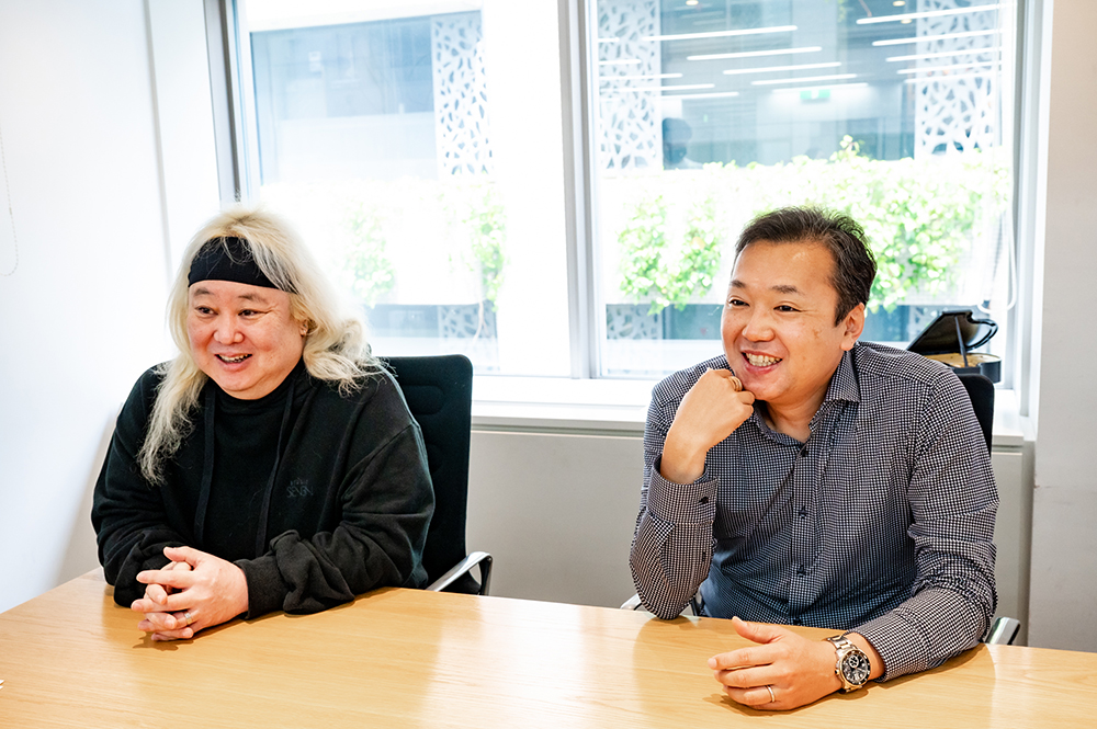 エリック:付き合いも長いし、お互いに正直に物事を言えるんですよ。タレントのサポートとか音楽番組とか本当にいろんなことをやっていて、お互いの癖とかも知り尽くしていますね。だから、あまり話し合う事なく、楽に仕事を進められるんです。また、僕は英二郎の侍ブラスというグループにも入っていますから。それは、ちょうどレコーディングが終わったばかりなんです。