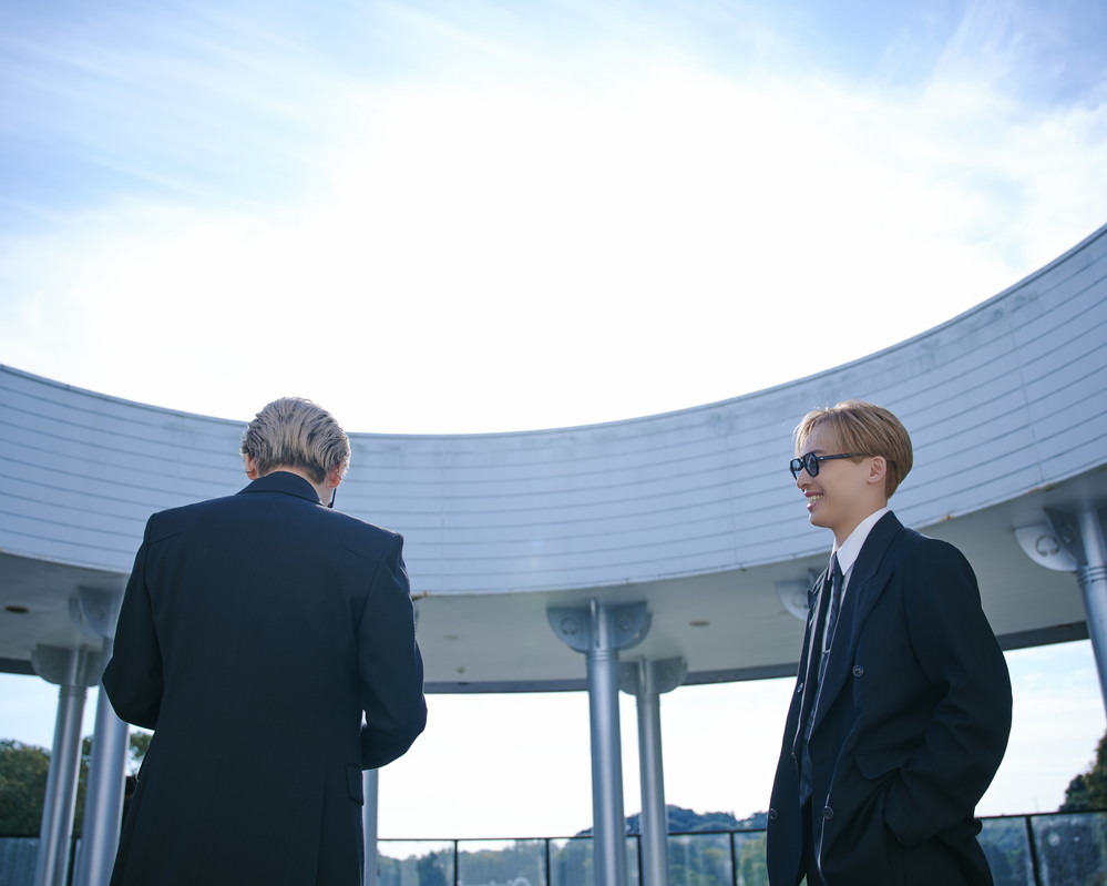 クールなMVとは裏腹に、撮影は和やかなテンションで行われた。先述の通り、claquepotとNovel Coreは元々親交が深く、気心の知れた仲ということで、撮影の合間には雑談をしながら笑い合っている。声が響く場所だったからか、突然合唱曲を歌い始めたNovel Coreに対し、claquepotは共に歌ったりしつつも、わざとふざけた歌い方をするNovel Coreにツッコミを入れることも忘れない。お笑いコンビで言うところのボケとツッコミを思わせる関係性が窺えるが、claquepotが「(Novel Coreの所属事務所である)BMSGの人たちはボケばっかりだから。社長(SKY-HI)と1時間いたら多分100回はツッコんでる」と笑うと、Novel Coreも「確かに。同じ血筋なんですよ」と応じていた。また、Novel Coreのソロカットの撮影中には、その様子を遠くから眺めていたclaquepotが「(Novel Coreが)アリーナ(でワンマン公演を行っている姿)が想像つくわ」と呟く一幕も。アーティストとして信頼し合っている様子も垣間見えたのだった。