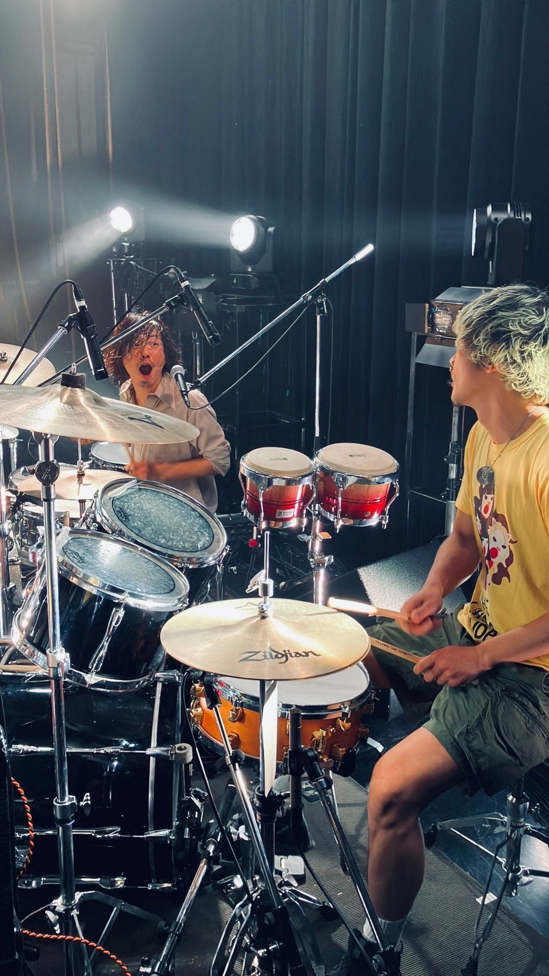 後方ではたいちがドラムをチェック。持ち前の明るさに加え、ZION唯一の関西人というたまらんキャラでありながらもライブの前日には必ずスタジオで個人練習に打ち込むという努力家の一面も持ち合わせる。彼のドラミングは振り下ろされる腕の機動の鋭さや逞しさとは裏腹の温かく、柔らかで、ふくよかなタムとキックの鳴りが秀逸。これまた「めちゃくちゃいい音してる。楽器と演者が愛し合ってる。相当叩き込んでるな、あのキット」なんて独り言を漏らすと、「そうだね。SAKAEってもっとハイファイな音だと思ってたんだけど、たいちのキットでたいちが叩くとあったかい音になるんだよね。ZION結成時からずっと大事に使ってる」なんてみっちゃんが返してくれました(笑)。ライブ中のエモーショナルな顔つきと叩き方のカッコ良さにも痺れてます。鳴らす音はデカくてロッキンだけど、そこに持ち前の優しさをも滲ませることができるドラマーという、夢。