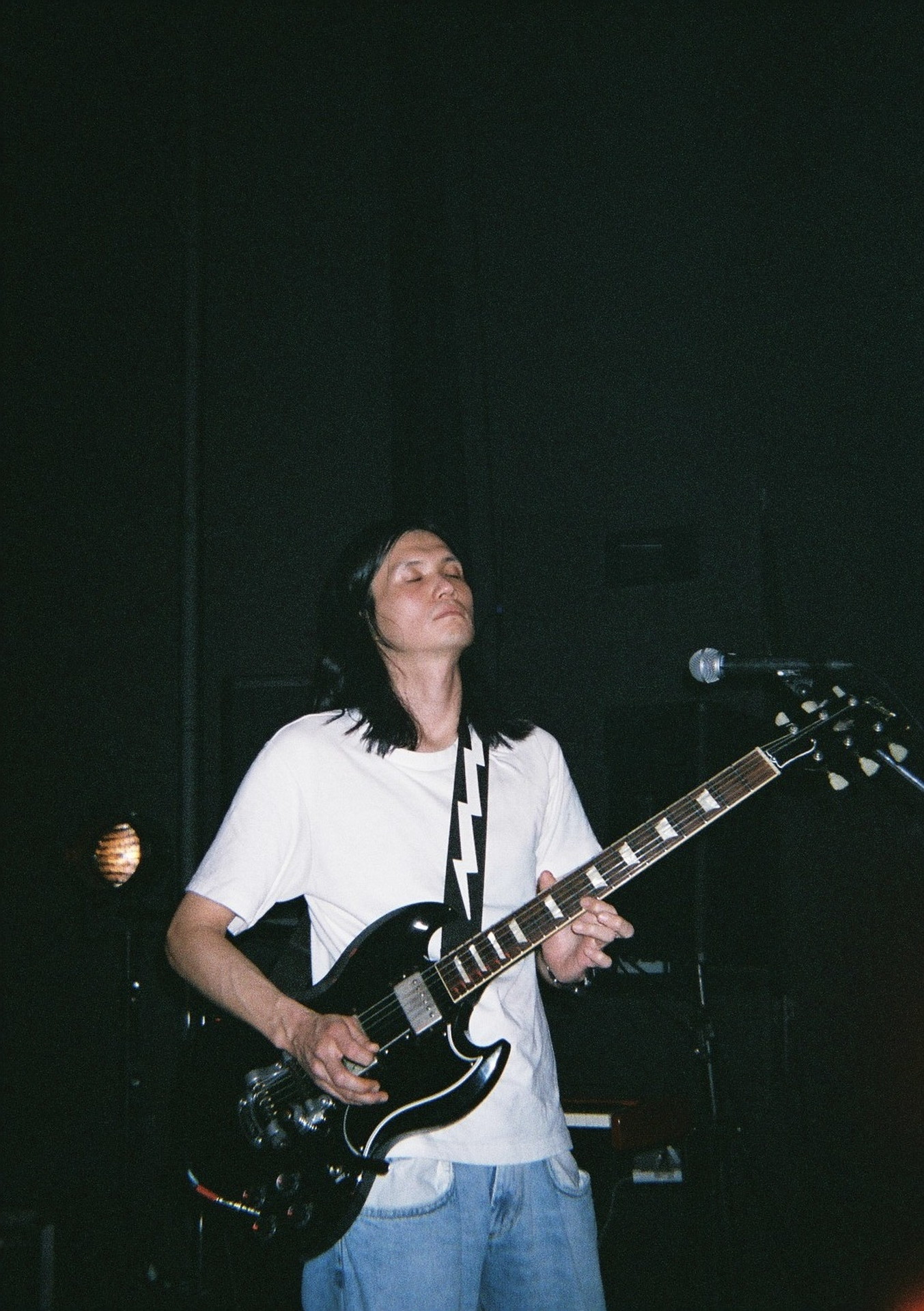 そして、ある意味ではしんちゃん以上に飄々としている様にも見える長身ロン毛(俺の大好物である)のさっち(吉澤幸男)。『Countryman』では彼が作曲に携わった割合が最も多く、何なら俺がZIONで1番好きな『SUN'n'JOY』3曲目の「New Moanin’」も彼の手によるもの。普段はギターとキーボードの中間的な音作りで曲の雰囲気を演出するフレーズを担う、言わばレディオヘッドのジョニー・グリーンウッドなプレイスタイルなのだが、そんなさっちがライブ中、タガを外して暴れ狂いながらギターを弾きまくるとそのノイジーでサイケデリックな音に凄まじいうねりが込められ、場内に途轍もないカタルシスを生んじまうところがたまらん。メンバーで唯一パンク、ハードコア、アバンギャルドにどっぷり浸かった出自ならではのバンドの起爆剤でありながら映画やお笑いなどにも造詣が深い、ギャップ萌えとサブカルの化身みたいな人でもあるという、夢。
