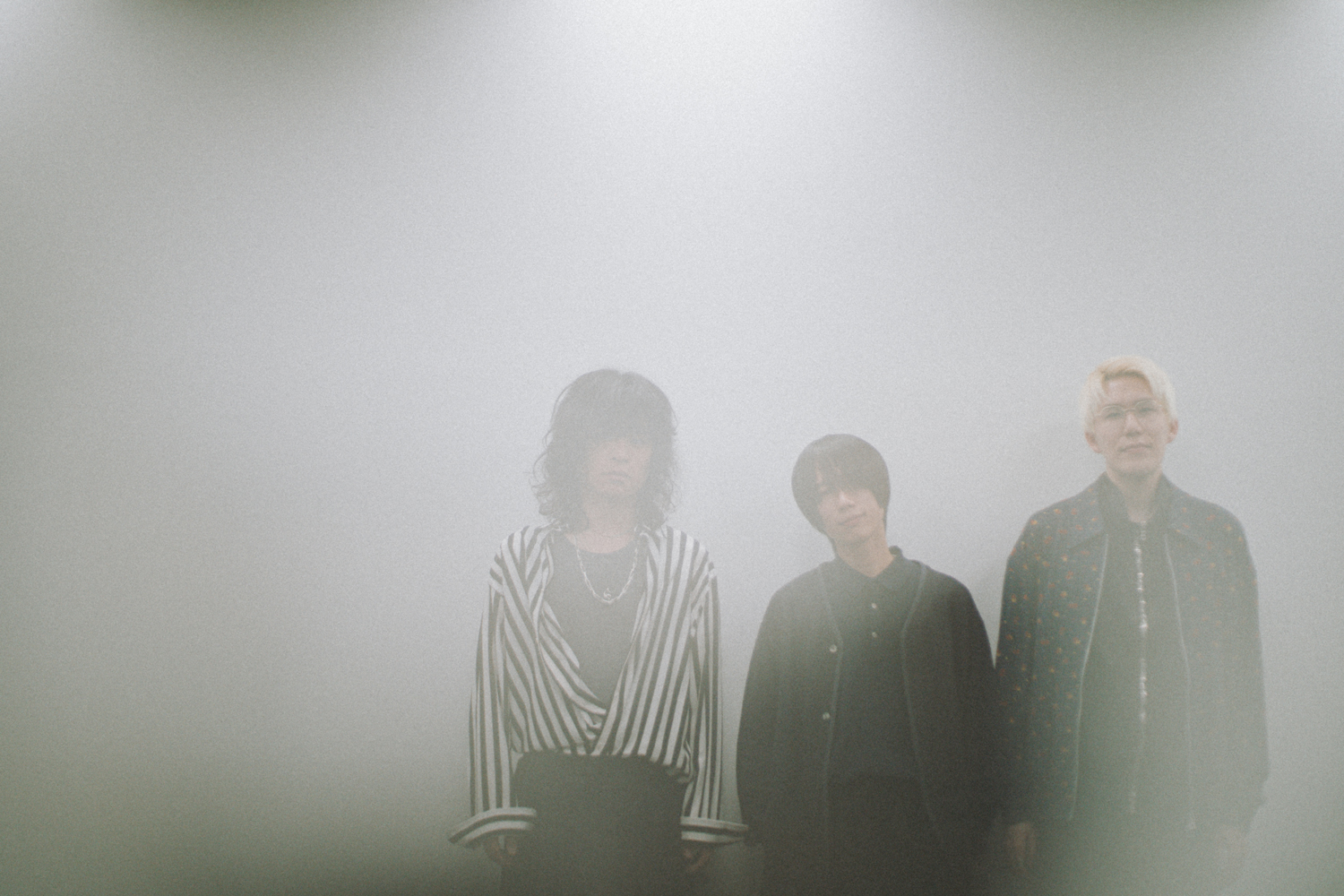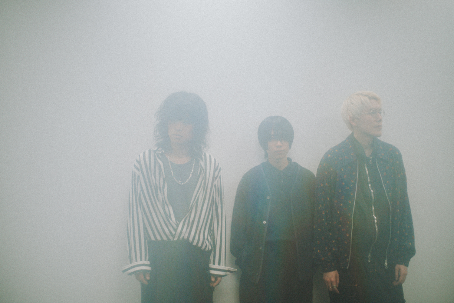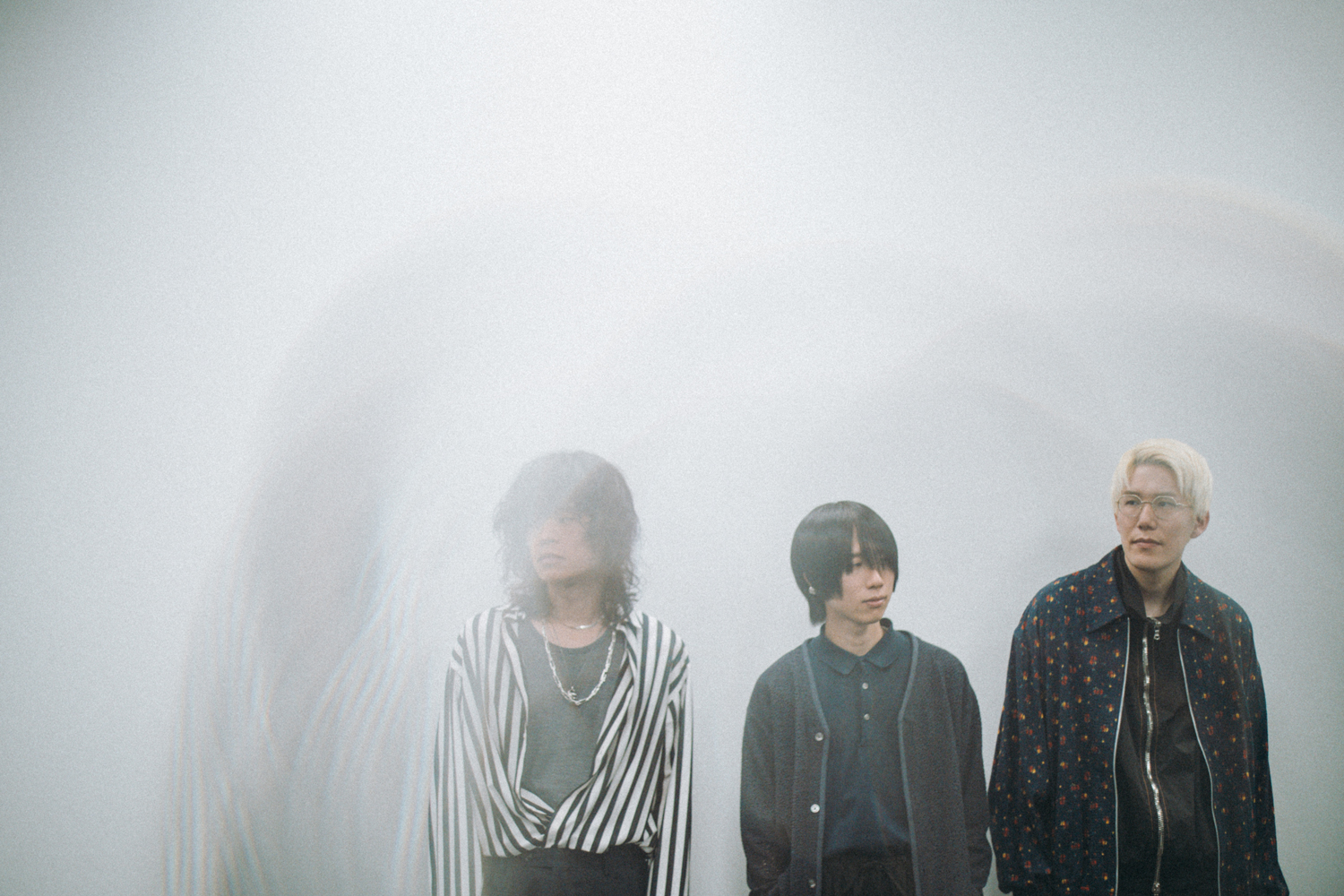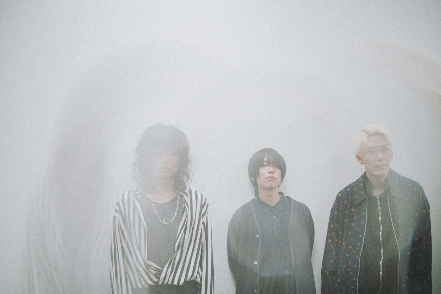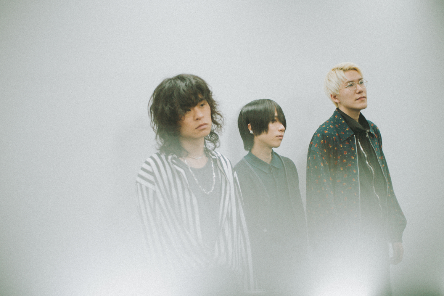 疾走感みなぎるメロディックなギターロック「旧世界より」で幕を開け、先行配信曲「千年鳥」や新曲を連ね、昨年夏にリリースされたドラマチックな大作「渦巻く夏のフェルマータ」に至る全5曲。スリーピースの限界に挑む豊かなアレンジ、深い心象と美しい風景を描く歌詞、透明な抒情溢れる歌声が、耳をとらえて離さない。アニバーサリーを飾る傑作はいかにして作り出されたのか、ナカシマ(Vo. / Gt.)、峯岸翔雪(Ba.)、原駿太郎(Dr.)に話を訊いた。
