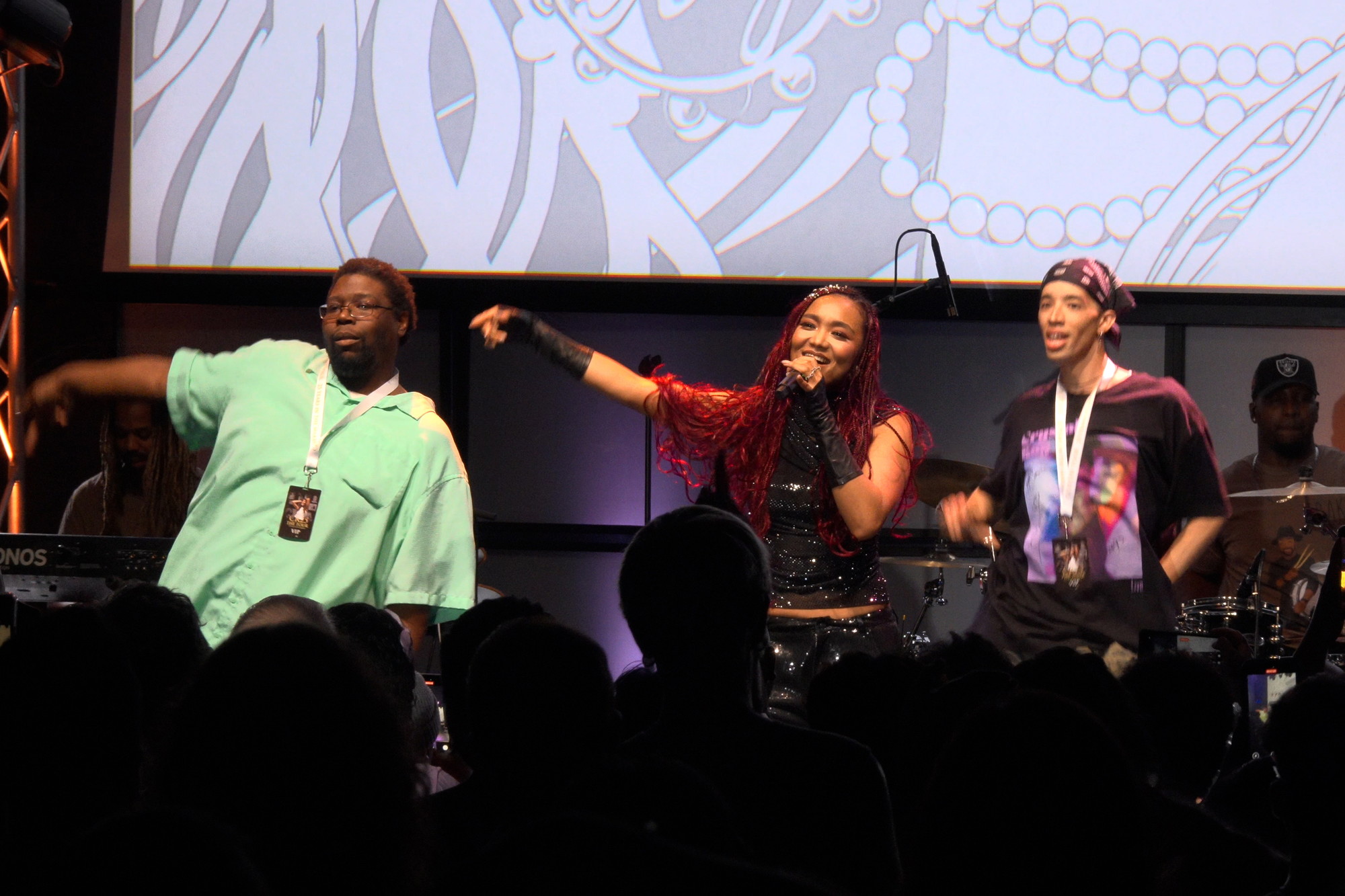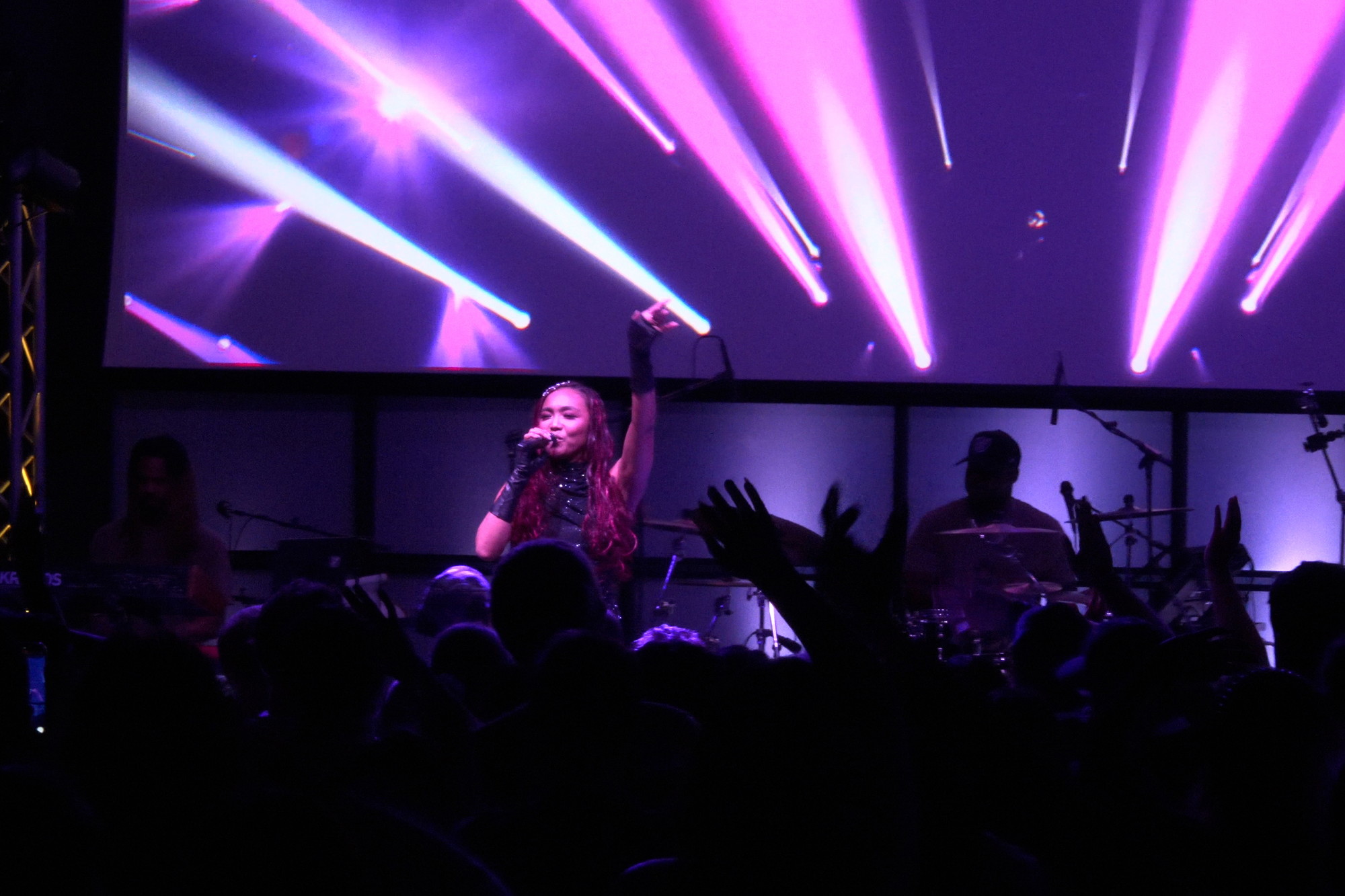 自身を知ってもらえるきっかけになったと本人も述べたアニメ映画のテーマソング「ONE」を披露すると、「Gimme Some」では赤い照明とストロボを使用しラップも披露するパフォーマンスの幅の広さを見せつけ、「横浜からイングルウッドの街まで来たね。最高!」と感想を述べた。