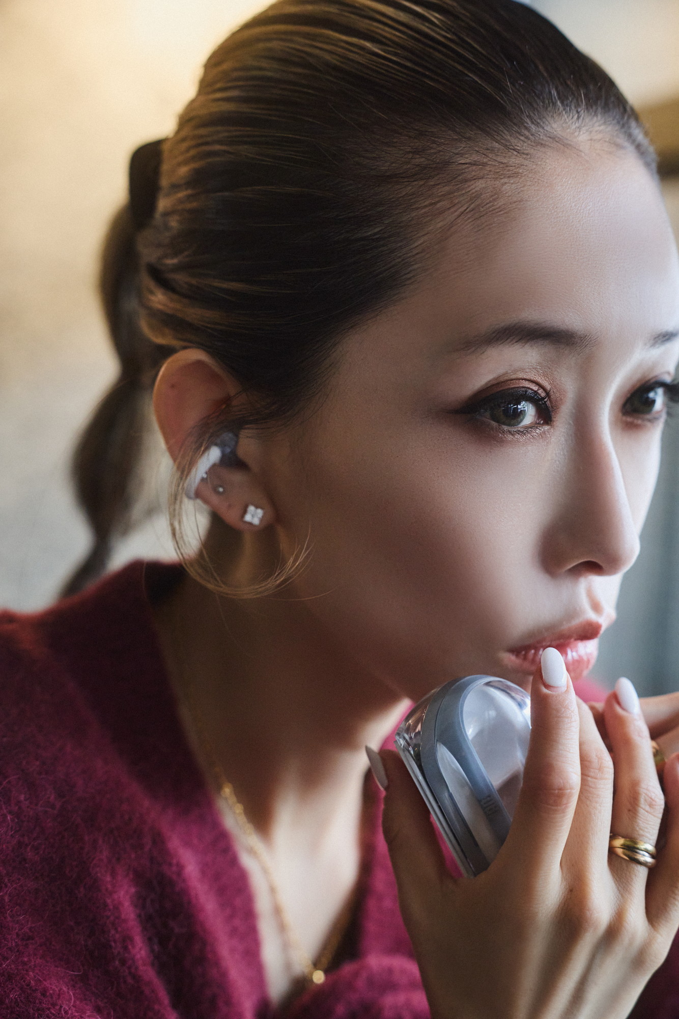 加藤:とにかくおしゃれ! 本体はもちろん、イヤホンケースのデザインも洗練されているし、開けるとライトが点灯するのも近未来的で、思わず気分が上がります。どちらのモデルも耳にすぐフィットしてくれますし、見た目に惹かれたので用途や気分によって使い分けたくなりますね。特にイヤーカフ型の「JBL Soundgear Clips」は、アクセサリー感覚で楽しめる上に、耳の形に左右されず自分に合ったポイントを探せるのが嬉しい。落ちそうで落ちない絶妙なホールド感なのだけど、実際に動いてもズレないんです。